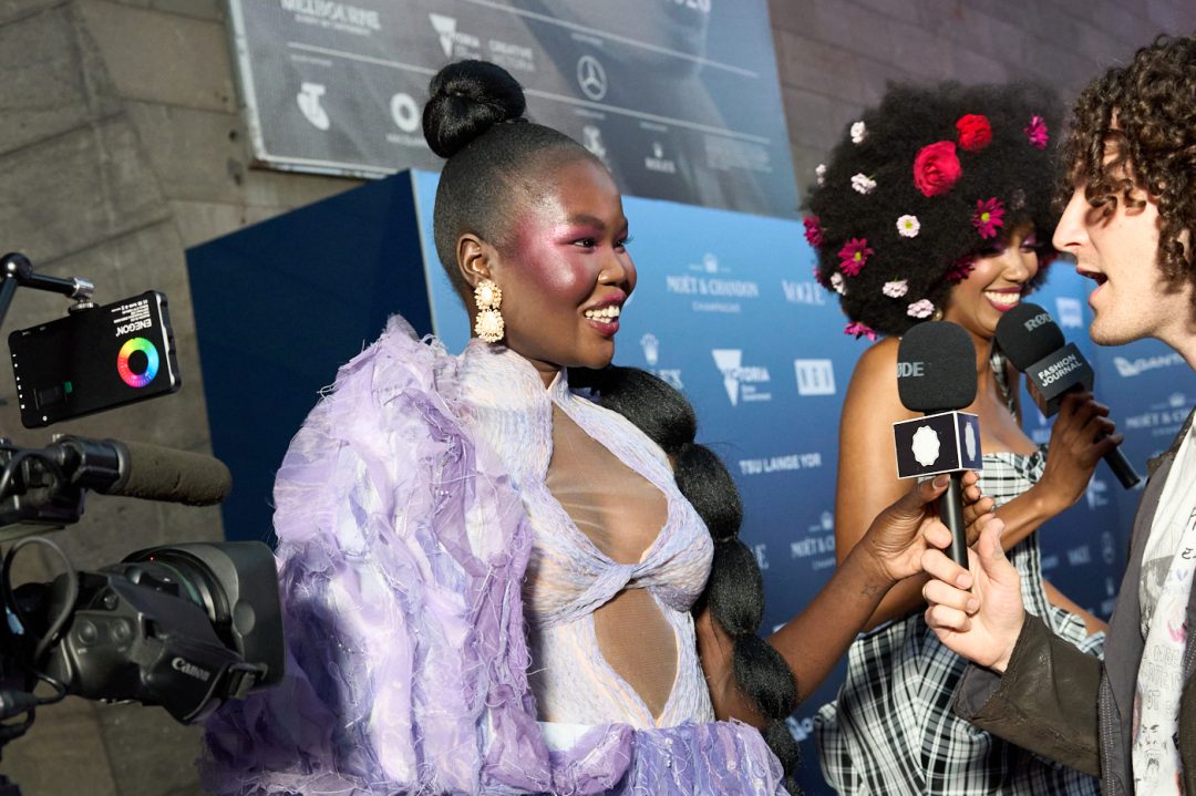 From 6 pm-ish A-Listers spill into the media pit pitched around the NGV’s iconic arch and waterwall for shots and chats in time for the news.