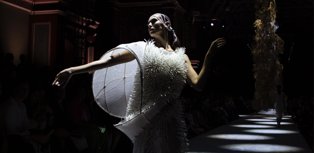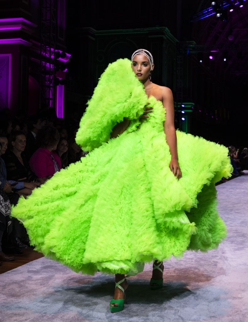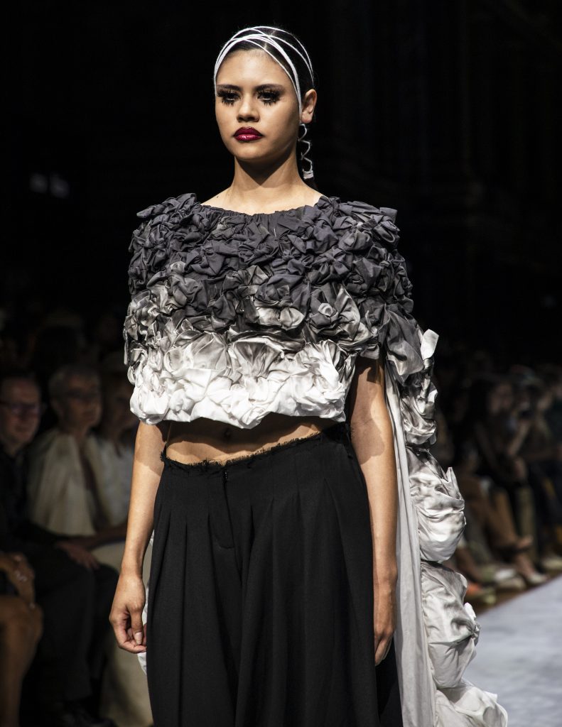 The concept of sustainability was incorporated, without distracting from designers’ vision, in upcycled materials; wood, zip-ties, and Bryanah D’Costa’s film slide cloak, made for unforgettable fashion moments.