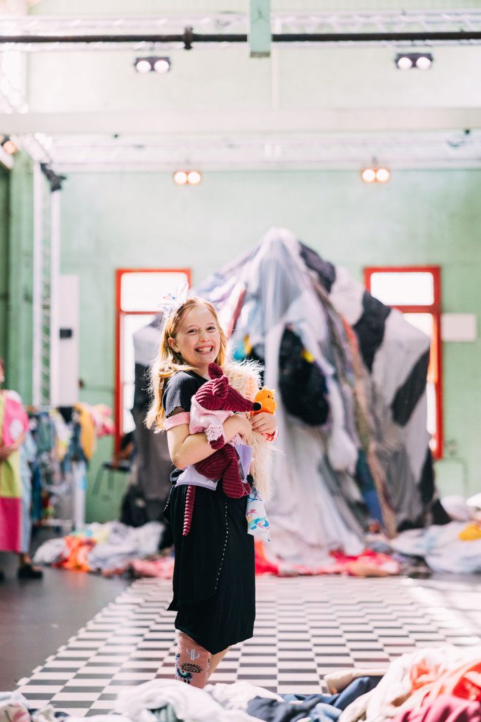 “You are entering the future,” Tenille explains, “It’s 2125; civilisation has collapsed, humans have bought, worn and thrown out their clothes so many times that fashion waste has taken over the whole world. Everything is made of old clothes: the rivers, forests, seas and land…”