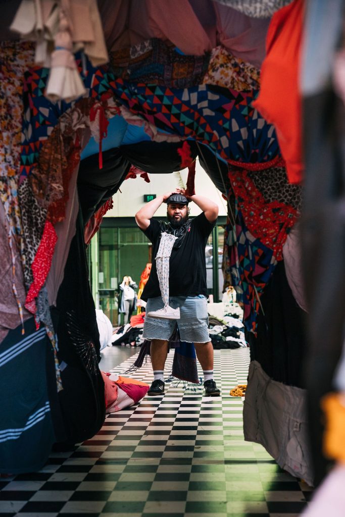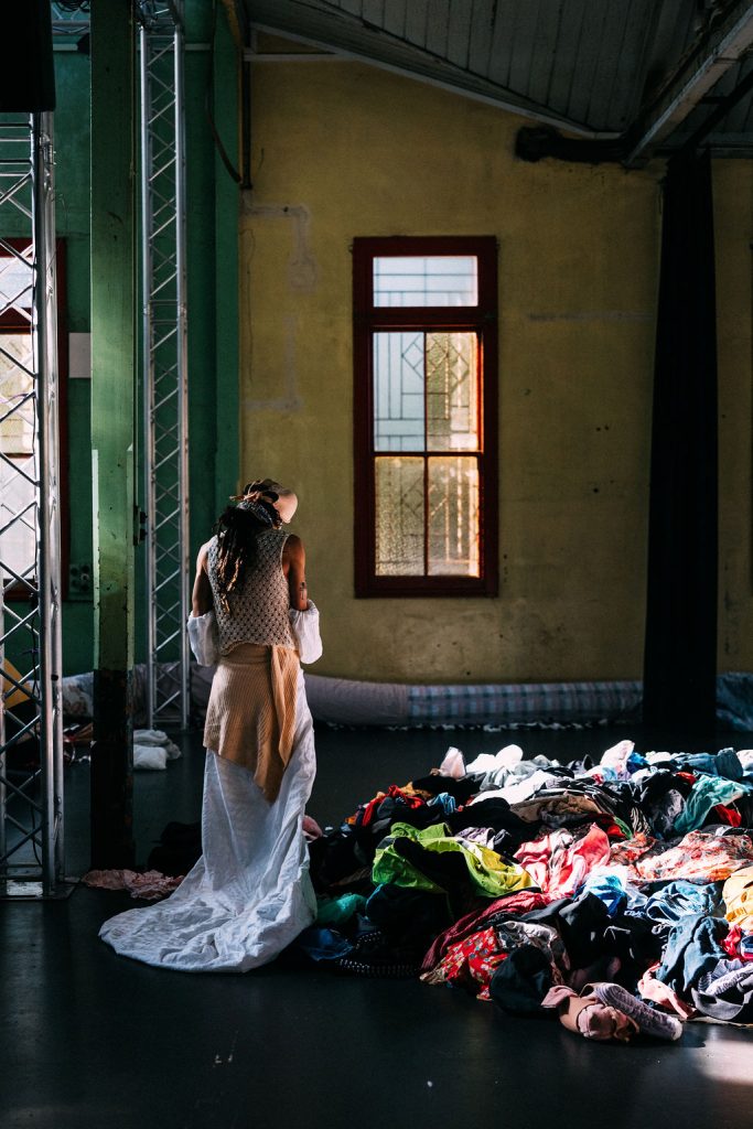 Tenielle is a big fan of dystopian fiction and this is evident as she cleverly creates the scene. For those who know the horrifying statistic, that Australia has surpassed the US as the world’s biggest consumer of textiles per capita, this is more than confronting. Pushing your hands deep into piles of discarded garments is an uncomfortable symbol of this growing global crisis.